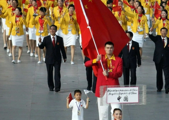 之后,篮球队又产生了一个在连续两届奥运会中担任旗手的运动员,那就是家喻户晓的姚明。